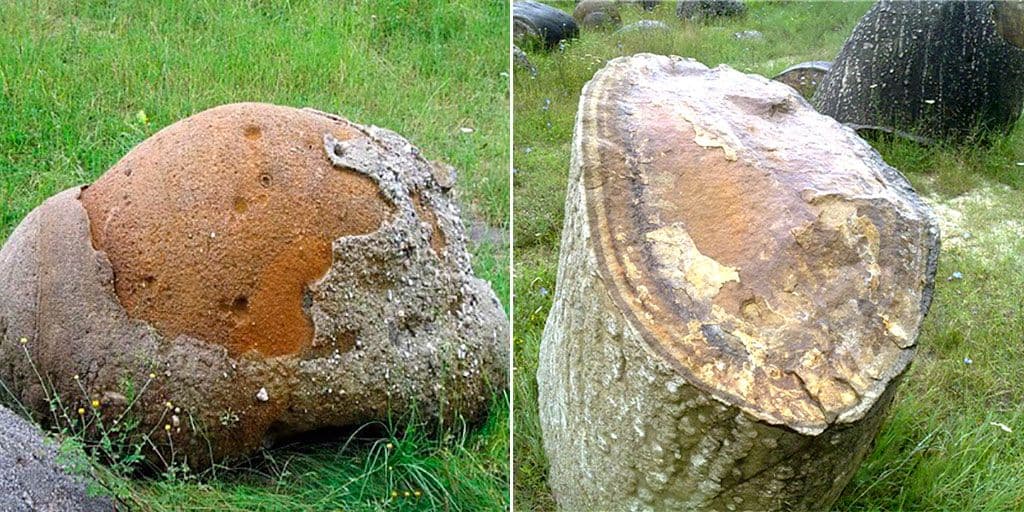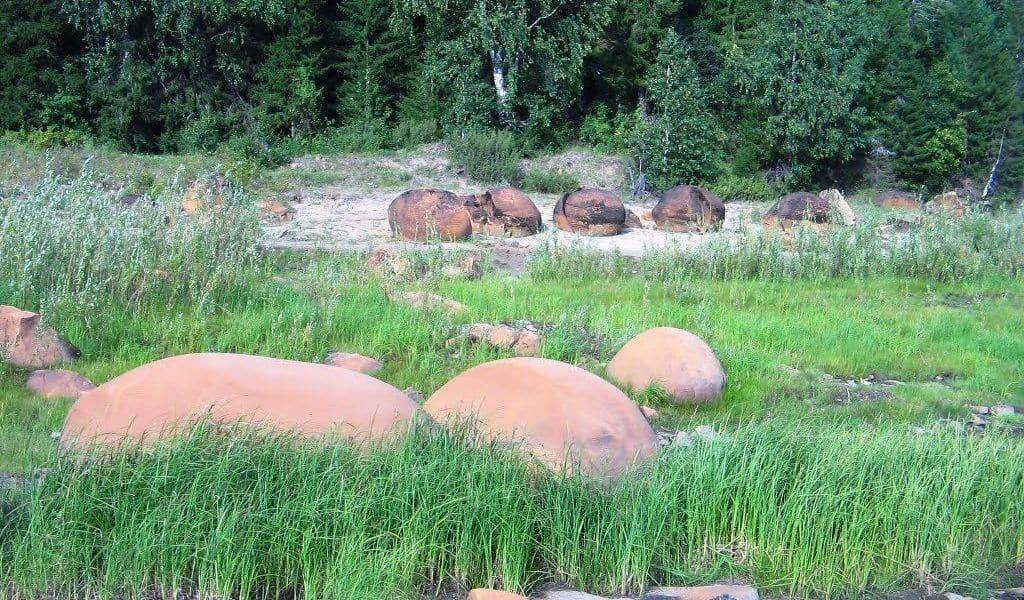 Минеральные сфероиды есть и в России. Округлые глыбы выходят из-под земли в окрестностях д. Андреевка Орловской области, а в п. Богучанка на севере Иркутской обл. в разрезе угольного карьера лежат каменные сферы, как будто сделанные из металла. Шаровидные валуны найдены близь с. Мокрая Ольховка в Волгоградской обл., в речке Ижма (республика Коми), а также на островах архипелага Земля Франца-Иосифа.