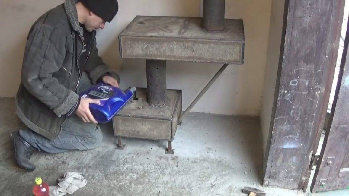 Буржуйка, чертеж которой продуман самостоятельно или найден на специализированном ресурсе прослужит вам долгие годы и не выйдет из строя, если ещё на начальном этапе вы ознакомитесь с основными требованиями и правилами к эксплуатации такого отопительного агрегата. Отработанное масло необходимо заливать в резервуар для него до отметки в ½-1/3, но не полностью, так как в процессе нагрева оно будет бурлить и прыскаться, что может привести к его попаданию на легковоспламеняющиеся поверхности и возгоранию. Также после того как масло отработано, перед применением в буржуйке, необходимо дать ему хорошо отстояться минимум несколько часов.