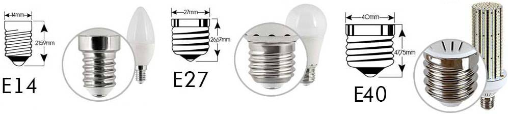 Этот вид ламп с легкостью вкручивается в классический цоколь «Эдисона» — Е27. В компактных светильниках, настольных приборах и бра чаще используется Е14. Для более мощного освещения используют держатель Е40, который отличается большим диаметром. Держатели энергосберегающих ламп имеют и штырьковый типоразмер.