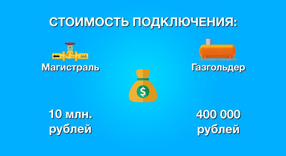 По эффективности и расходу топлива природный и сжиженный газ сопоставимы. Сравним их по стоимости подключения.