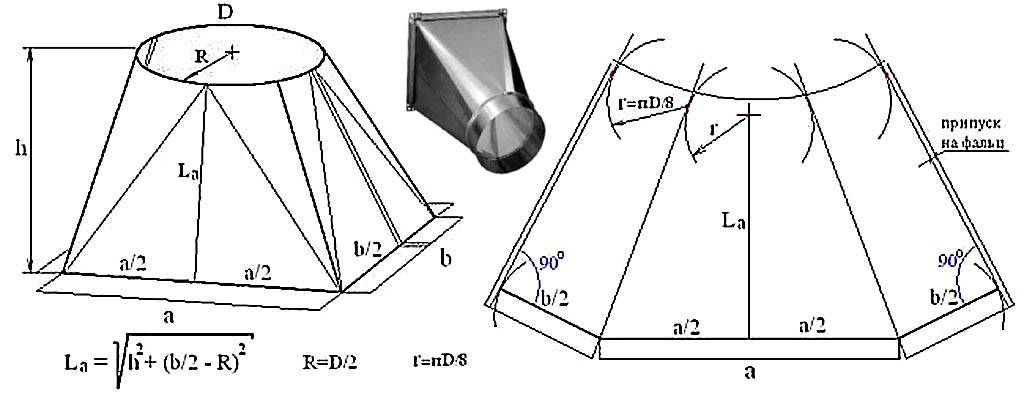 Далее нужно научиться по наружным размерам размечать выкройки деталей дефлектора. Для тех, кто предпочитает учиться наглядно, даем подборку видеоуроков по изготовлению деталей дымовых дефлекторов: