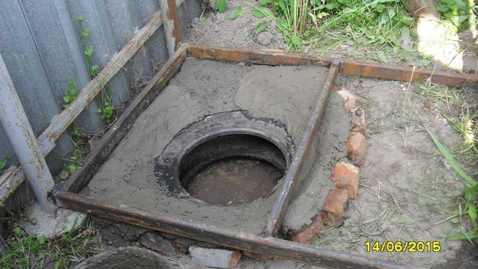 - Под решеткой выкапывают яму глубиной 50-60 см. На дно укладывают мелкий щебень и бетонируют дно со стенами. Канаву для слива делают из пластиковой трубы.