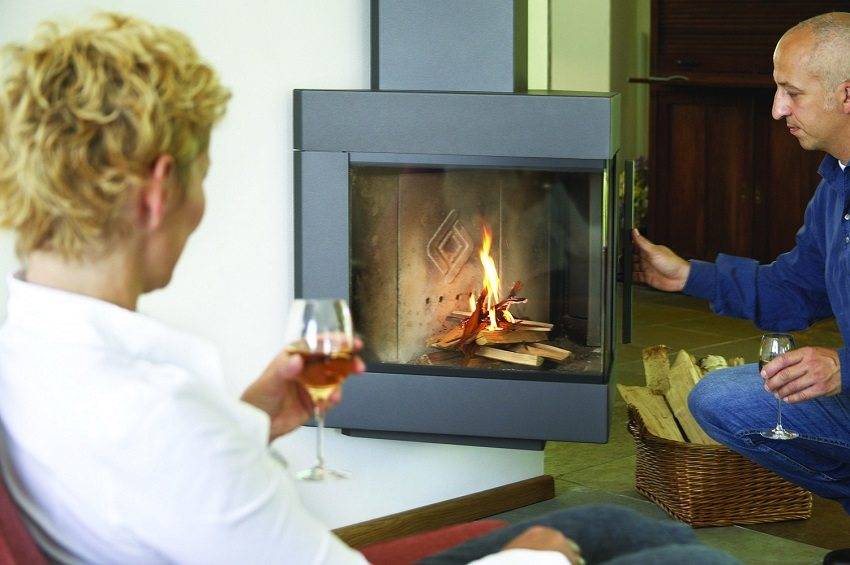 - Стеклянные двери. Их изготавливают из жаропрочного стекла. Прозрачный материал позволяет любоваться живым огнем, который, как известно, способен завораживать людей. Модели довольно часто комплектуются пиролизной камерой, в которой сжигается выделяемый газ. Это значительно экономит дрова и повышает КПД устройства.