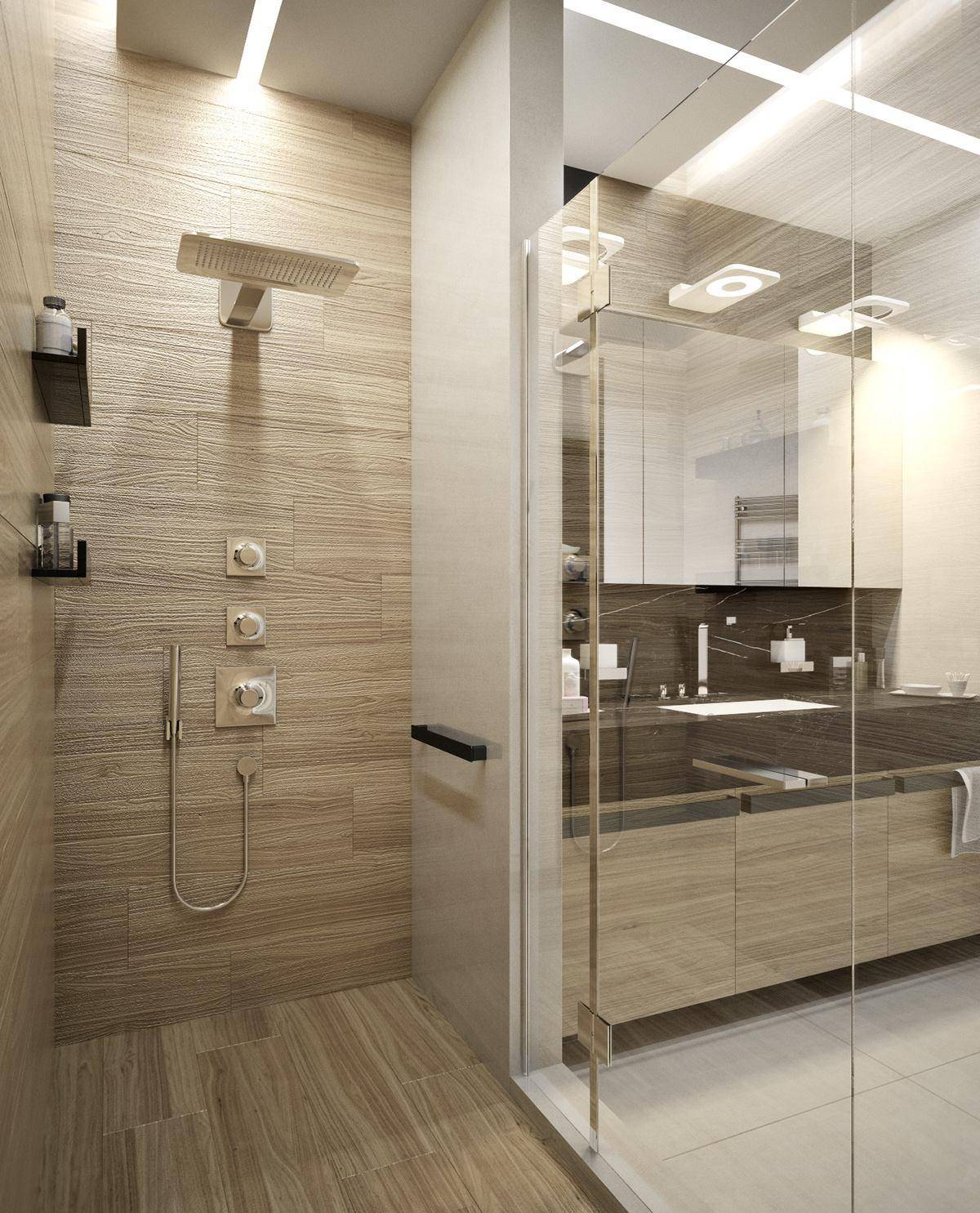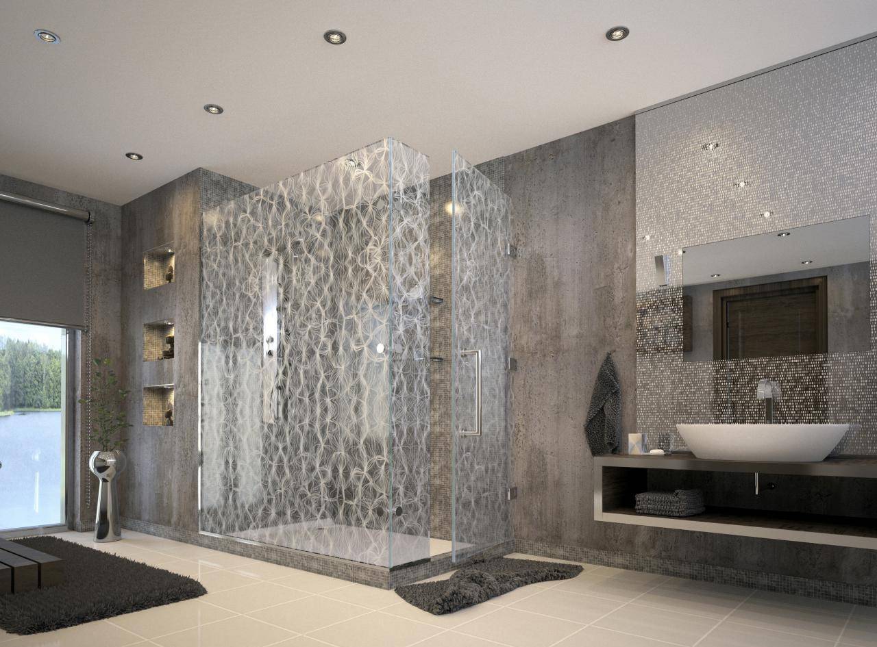 Эскиз оформления в цвете составляют на этапе проектирования. Можно выделить душевую контрастным цветом или подобрать оттенок общей гаммы. Отделка бокса может быть выполнена таким же кафелем, как и вся ванная: это создаст видимость цельного пространства при использовании штор или прозрачной стенки.