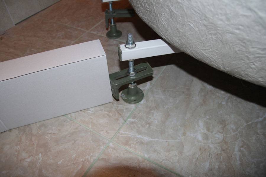 Каркас примеряем с учетом того, чтобы все его отверстия для крепежа, как на дне поддона, так и на углах поддона попадали на закладные.(это те части с обратной стороны поддона которые выпирают и предназначены как раз для того, чтобы там крепить каркас)