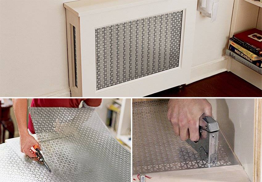 Но у металла есть серьёзное преимущество перед деревом — высокий коэффициент теплопроводности. Это свойство позволяет делать экраны, которые опираются непосредственно на батарею. Они даже повышают её теплоотдачу за счёт увеличения поверхности. Причём батарея с таким экраном лучше работает не только на излучение, но и на конвекцию — достаточно посмотреть на ребристые ТЭНы конвекторов.