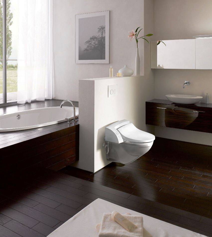 Среди производителей подвесных устройств лучшей является швейцарская компания Geberit. Унитазы с функцией биде «Геберит» дополняются надежными инсталляциями.
