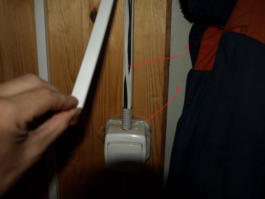 - Провода на выключатель освещения в кабель-канале.