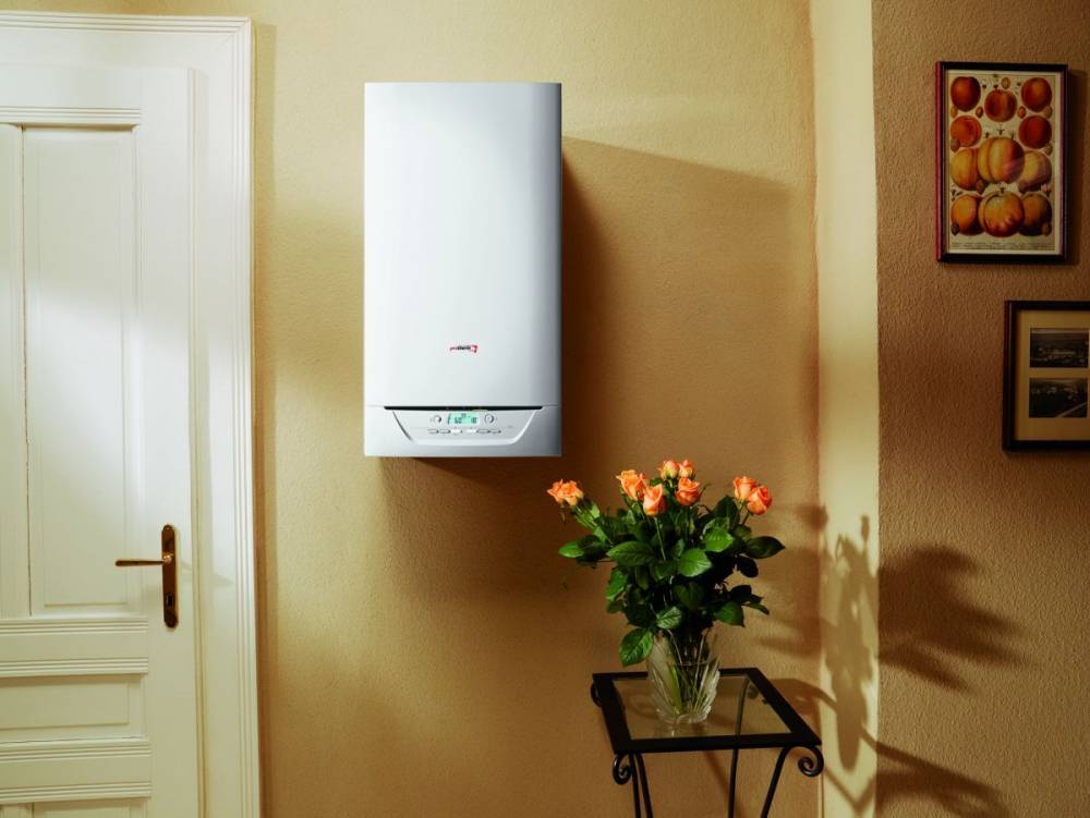 Настенные котлы более компактны, их можно повесить в ванной или на кухне. Они вполне прилично выглядят, а также потребляют гораздо меньше электроэнергии, чем напольные. Подходят для небольших домиков. Такой агрегат будет одноконтурным, производить либо тепло, либо горячую воду.