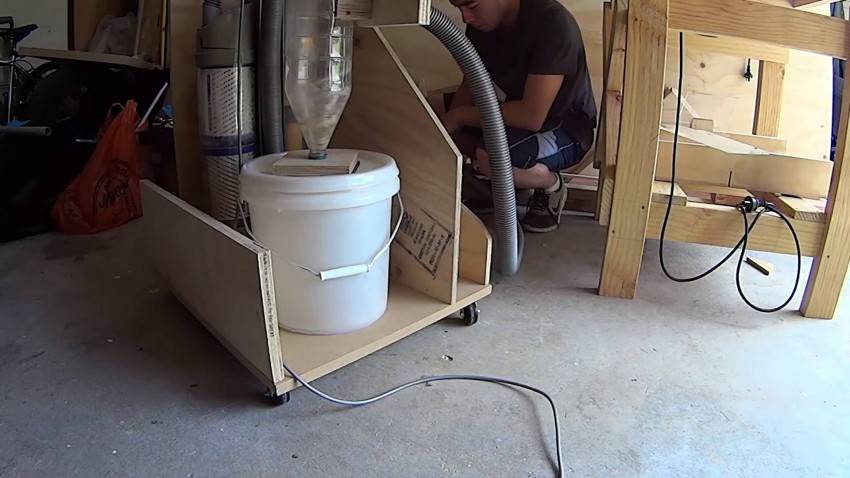 Сверху на принимающую емкость нужно установить пластиковую бутыль объемом 10 литров, в дне которой проделано заливное отверстие. Для изготовления фильтра можно использовать кусок полипропиленовой трубы на 40 мм. Верх и низ трубы закрывают кусками перфорированного пластика, который рекомендуется зафиксировать термоклеем. Труба заполняется древесным углем.