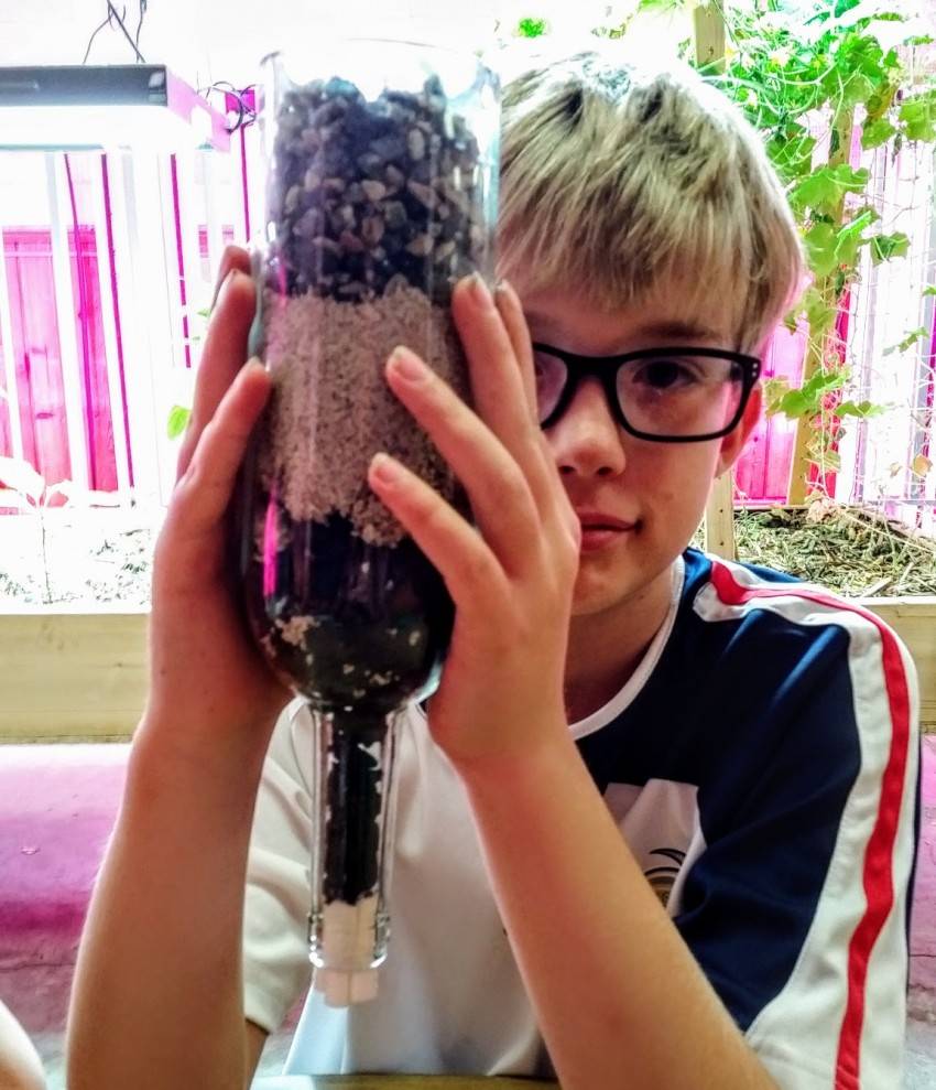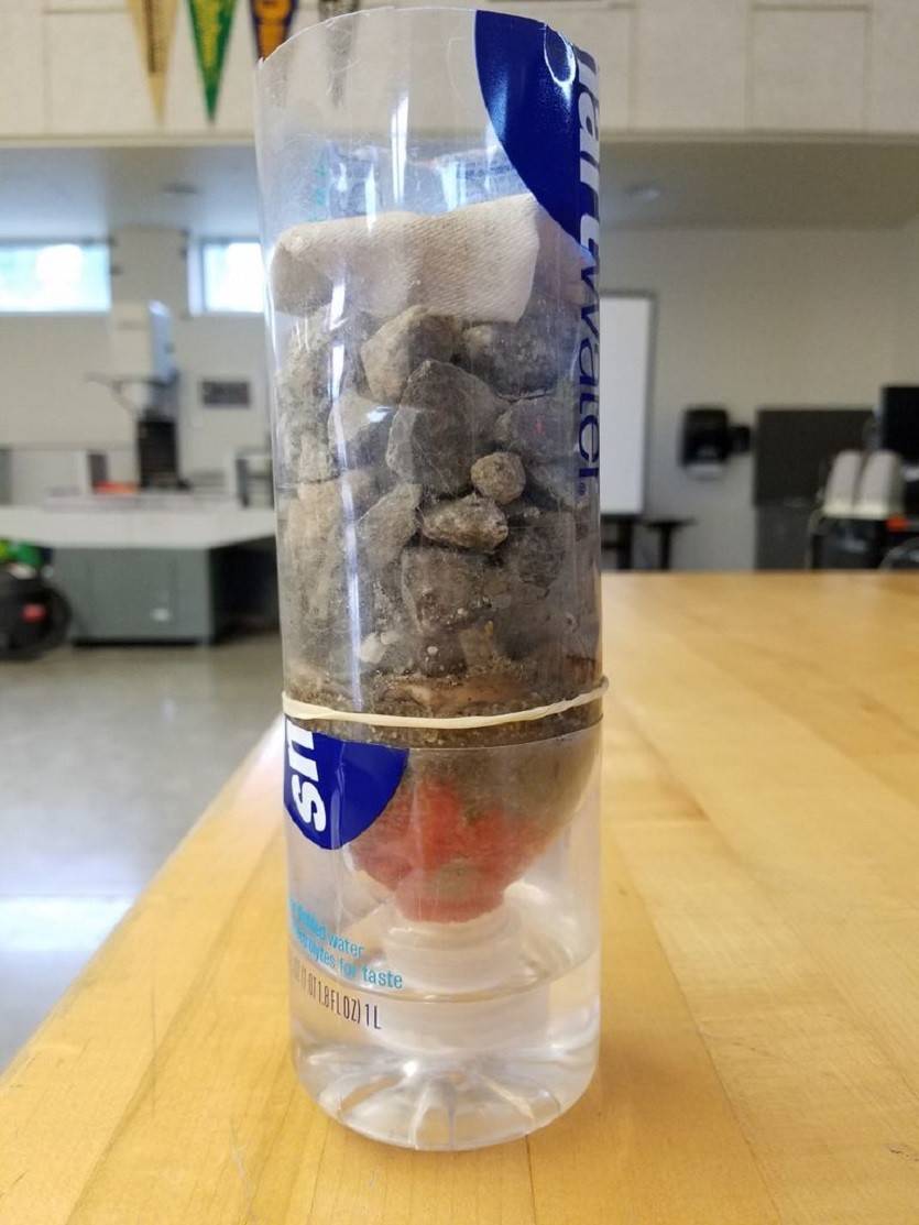 Фильтрационные слои должны заполнить примерно 2/3 общего объема бутыли, а 1/3 остается для нефильтрованной воды.