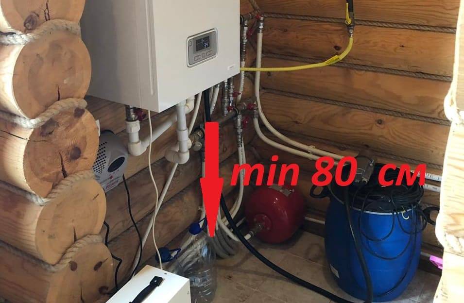 - Пространство под котлом должно быть свободным.