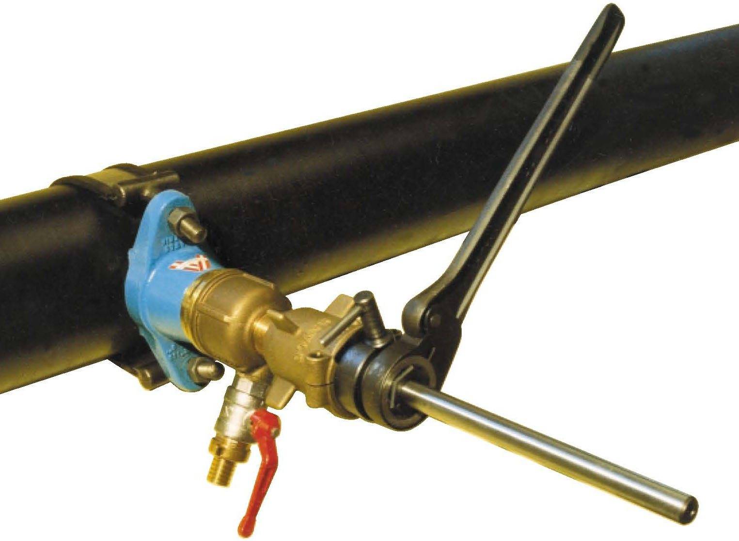 Отверстие диаметром не более 1/3 диаметра трубопровода высверливается с помощью специального сверлильного приспособления. Его временно присоединяют к проходному крану. После высверливание прохода кран перекрывается и сверлильное устройство снимается. К крану монтируют трубу отвода.