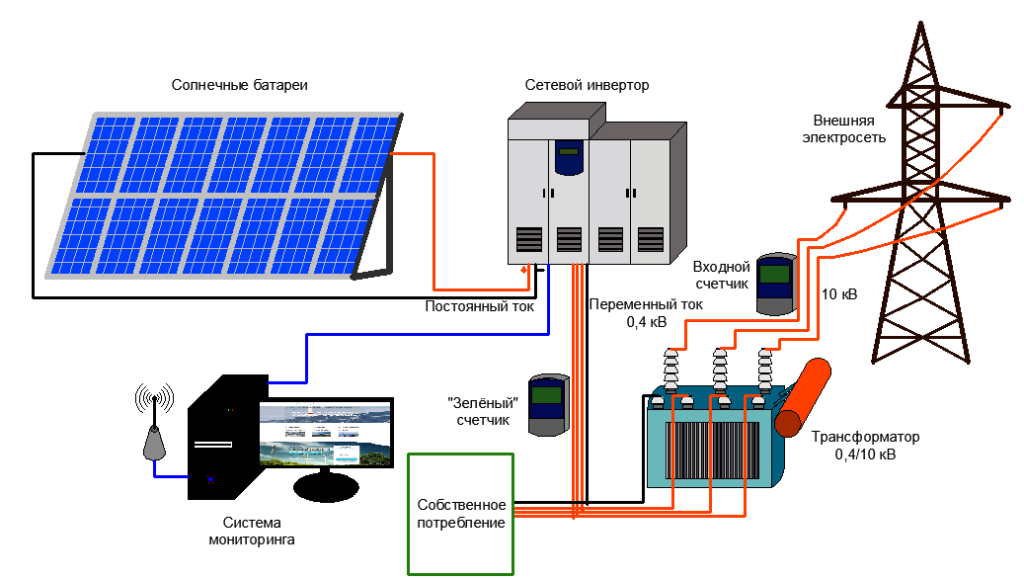 Схема подключения и работы солнечной станции