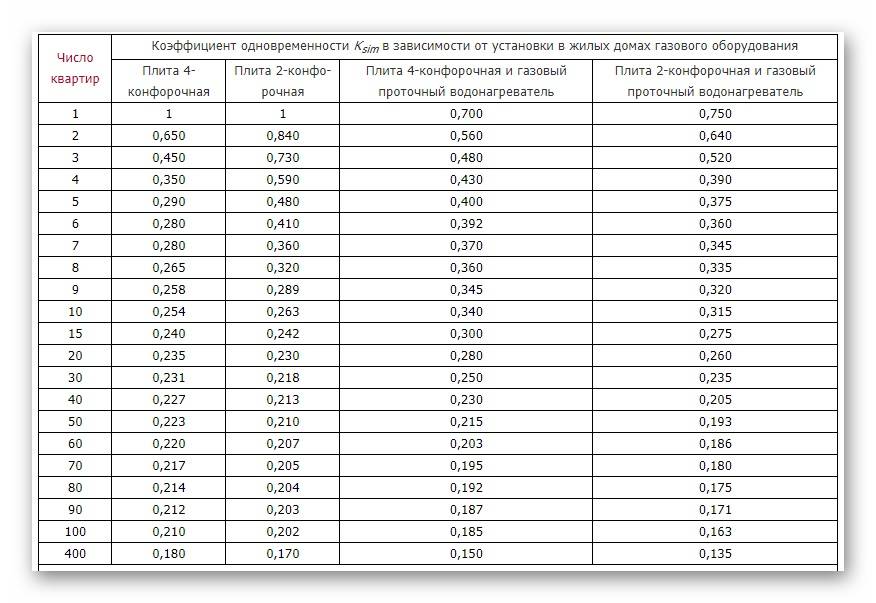 Зная изначальные показатели, имея доступ к таблице одновременности и к техническим паспортам плит и котлов, можно приступать к расчету.