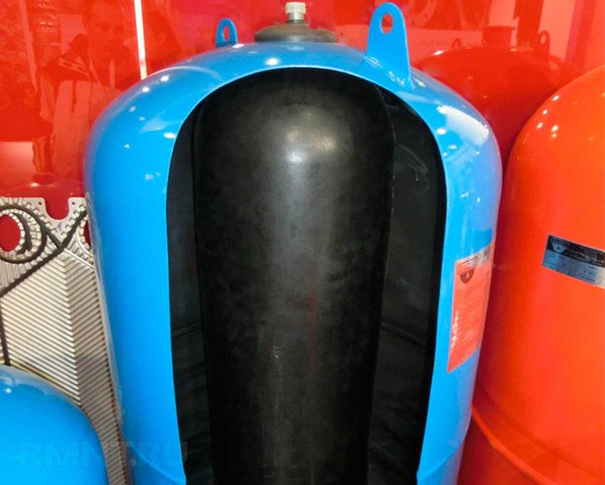 - По назначению – на отопительные и водопроводные: в большинстве случаев гидроаккумуляторы, предназначенные для подключения к системам отопления, имеют красный корпус, а их водопроводные «коллеги» — синий. Работают они по одинаковой схеме, но в водопроводных гидроаккумуляторах применяется пищевая резина, а в отопительных – техническая. Последняя является более долговечной. Еще одно отличие заключается в том, что «синие» рассчитаны на более высокое давление, чем «красные».