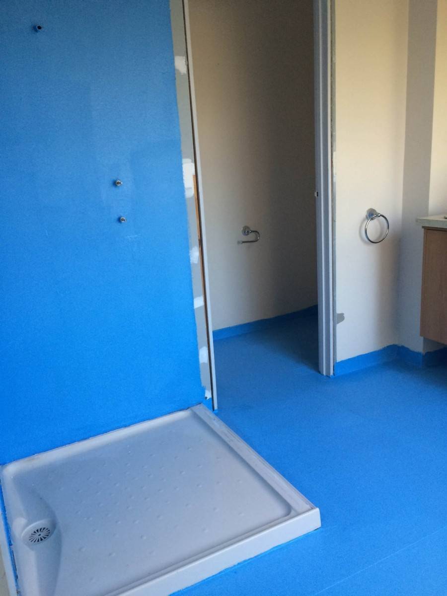 В этой системе есть материал № 3, задача которого – гидроизоляция стен. Это также полезно: если у соседа душ, то вода от него может проникнуть к вам. Напомним, что изоляция стен мастиками на основе битума закончится тем, что плитка, в конце концов, отвалится.