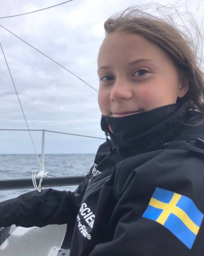 Фото: Грета Тунберг на яхте. Девушка принципиально не пользуется самолетами из-за их неэкологичности, а потому проделала путь в Нью-Йорк длиной в 2 недели на яхте.