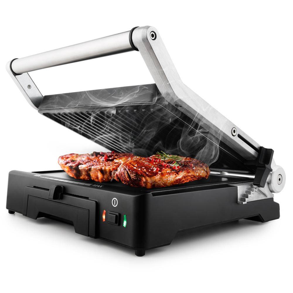 Возможность регулировки положения верхней пластины — очень полезная функция в случае запираемых электрических грилей. Он позволяет регулировать расстояние между продуктом, помещенным для гриля, и верхней нагревательной пластиной. Правильно подобранное сочетание позволит вам приготовить ингредиент на гриле в нужной степени и в нужное время.