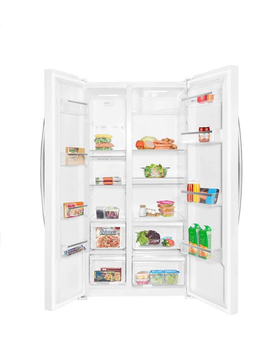 Гигант с расположенной сбоку морозилкой, отлично впишется в столовую большого загородного дома или на кухню популярного ресторана. Вместительный и эргономичный он работает бесшумно и подает сигналы только в случаях каких-либо нарушений в работе. Холод в морозильной и холодильной камере «Ноу Фрост», поддерживает функции «Суперзаморозки» и индикации температуры. Технические характеристики: