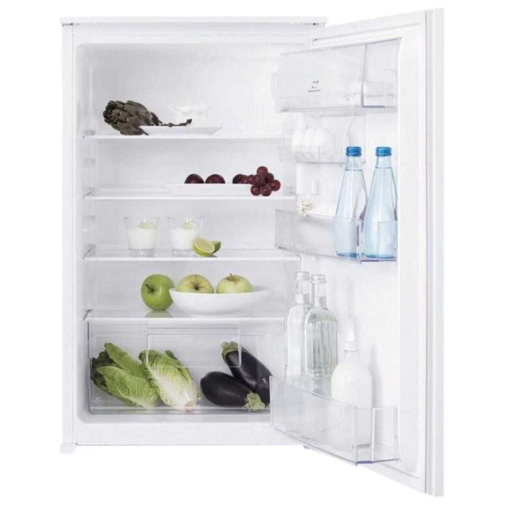 Еще одна модель встраиваемого холодильника Электролюкс, которая не предполагает наличие морозильной камеры. По своему полезному объему она немного больше, чем два предыдущих агрегата. Здесь вместительность составляет 147 литров — ее достаточно даже при условии отсутствия морозильника. В целом, внутреннее наполнение немного “богаче”. В этой модели производитель предусмотрел четыре полки из прочного закаленного стекла, два балкона под крупные бутылки, один — для яиц и еще одну навесную полку с матовой дверцей. Новшеством в этом топе стал просторный вместительный ящик для фруктов и овощей.