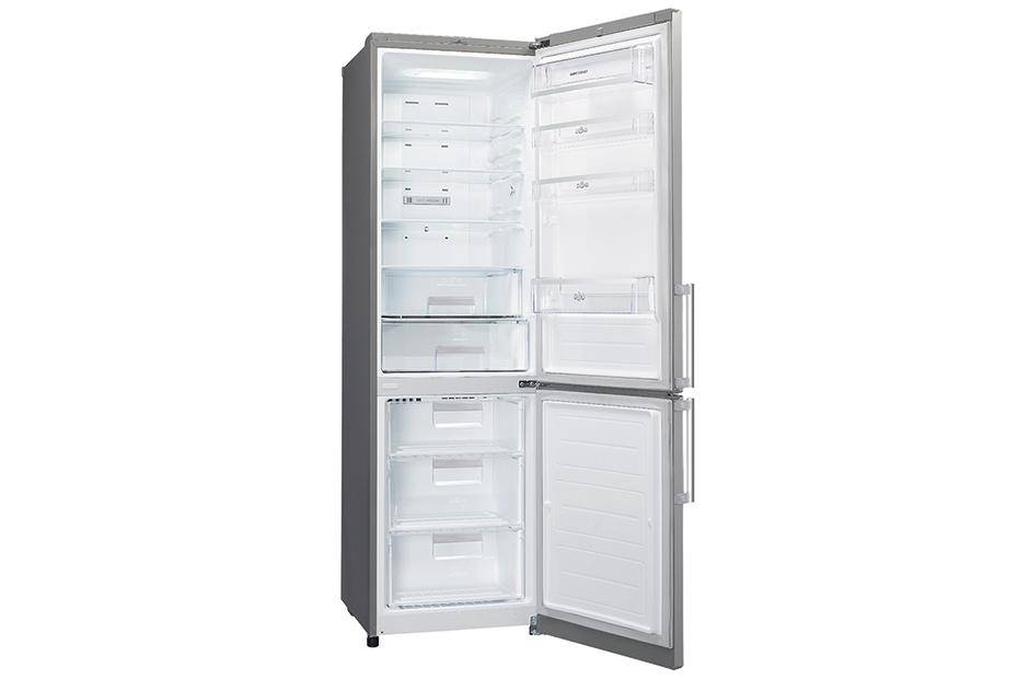 LG GA-B419 SLJL оснащен системой No Frost, которая не дает на стенках камер образовываться ледяной корке, поэтому холодильник не надо периодически размораживать.