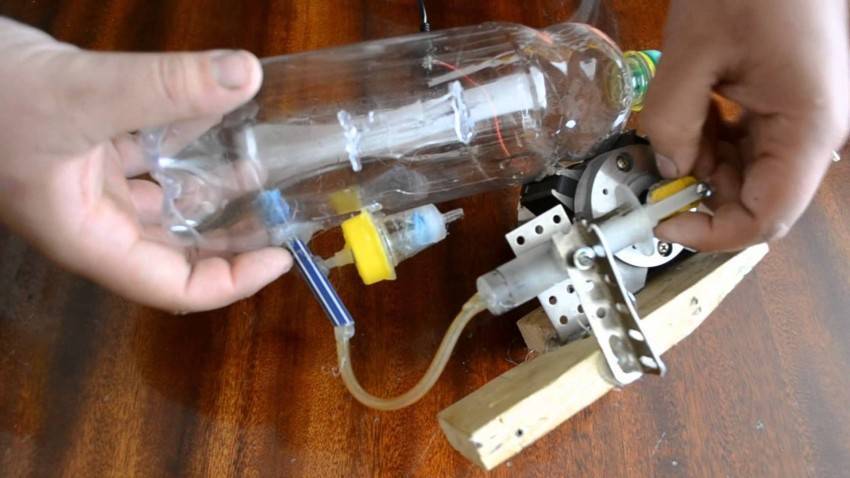 Чтобы откачивать любую жидкость, особой популярностью пользуются приспособления, не требующие долгой сборки. Именно такой мини насос для воды можно быстро сконструировать из пластиковой тары из-под лимонада. Его удобство заключается ещё и в том, что отпадает потребность в электричестве. Пользоваться им можно постоянно, не ставя никаких ограничений на водные ресурсы.