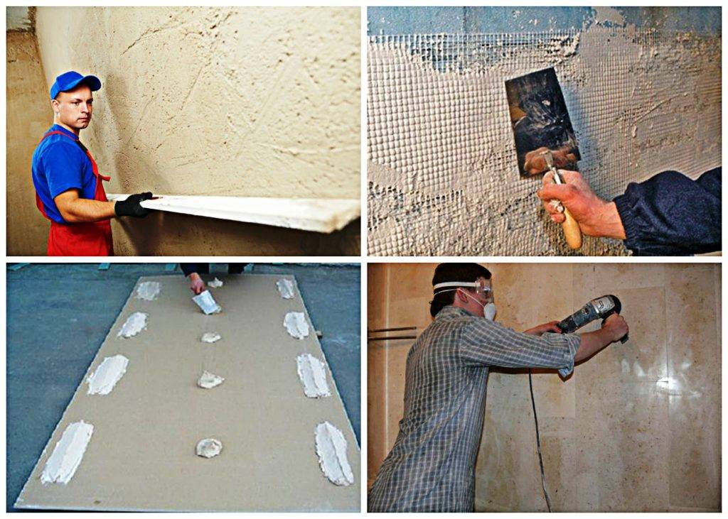 Для выравнивания можно использовать как оштукатуривание стен, так и обшивку их различными строительными материалами, например – листами из гипсокартона или гипсоволокна, различными видами панелей и пр.