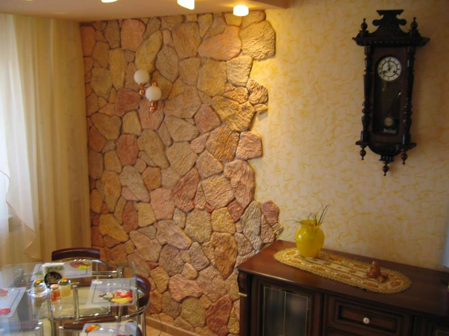 Если, допустим, по всем правилам облицевать стену искусственным камнемпо гипсовой штукатурке, то он скоро начнет отваливаться вместе с пластами штукатурки.