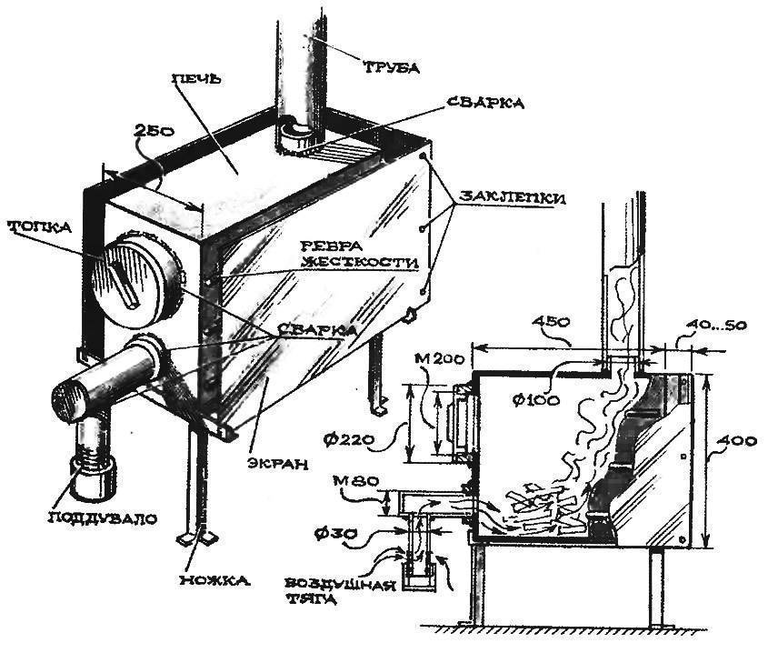 Фото№1 – чертеж буржуйки из кирпича своими руками