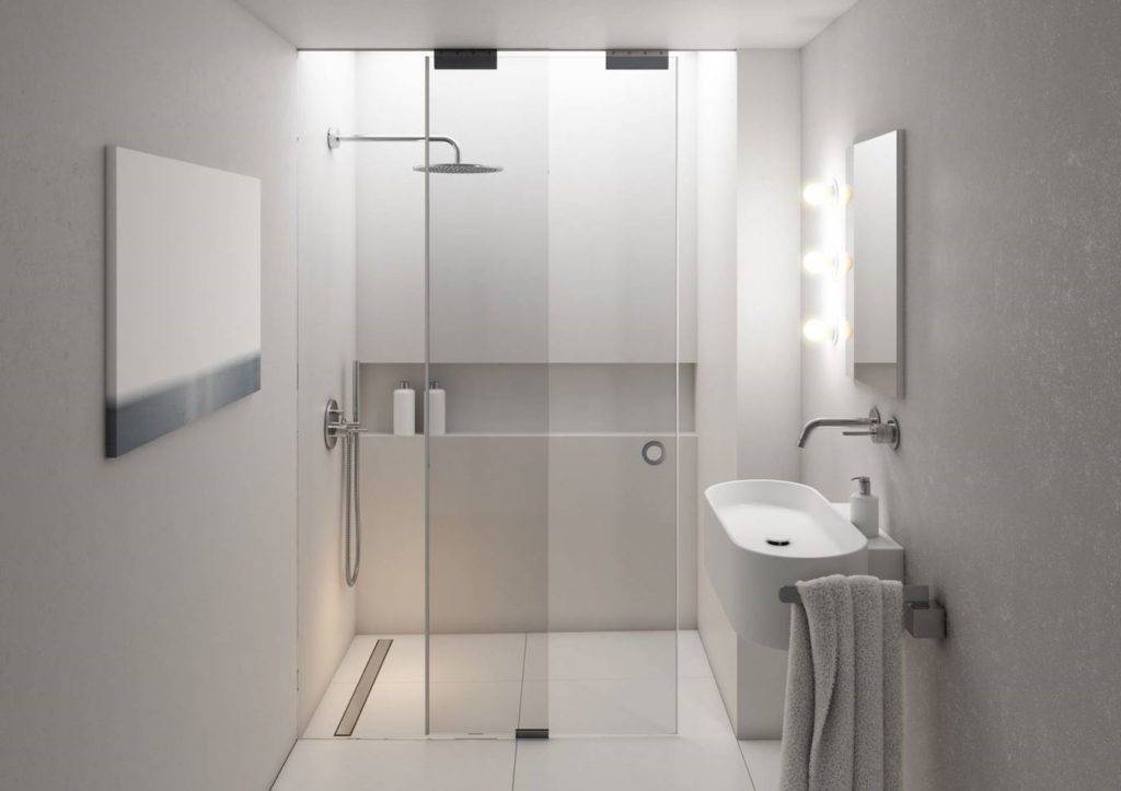 В случае, если зона слива имеет большую площадь поверхности, рекомендуется установить два дуговых дренажа (таким образом уменьшая вероятность затопления). Есть также боковой сток. Затем вся канализационная система монтируется в стене и обеспечивает надлежащий отвод после всего душа. Это решение будет работать, если толщина пола не позволяет установить другое решение. Гипсокартон позволит вам легко спрятать как сливную трубу, так и всю душевую панель в стену. Однако помните, что из-за высокой влажности в ванной комнате используйте влагостойкую плитку, обозначенную буквой H, чтобы обустроить эту комнату .