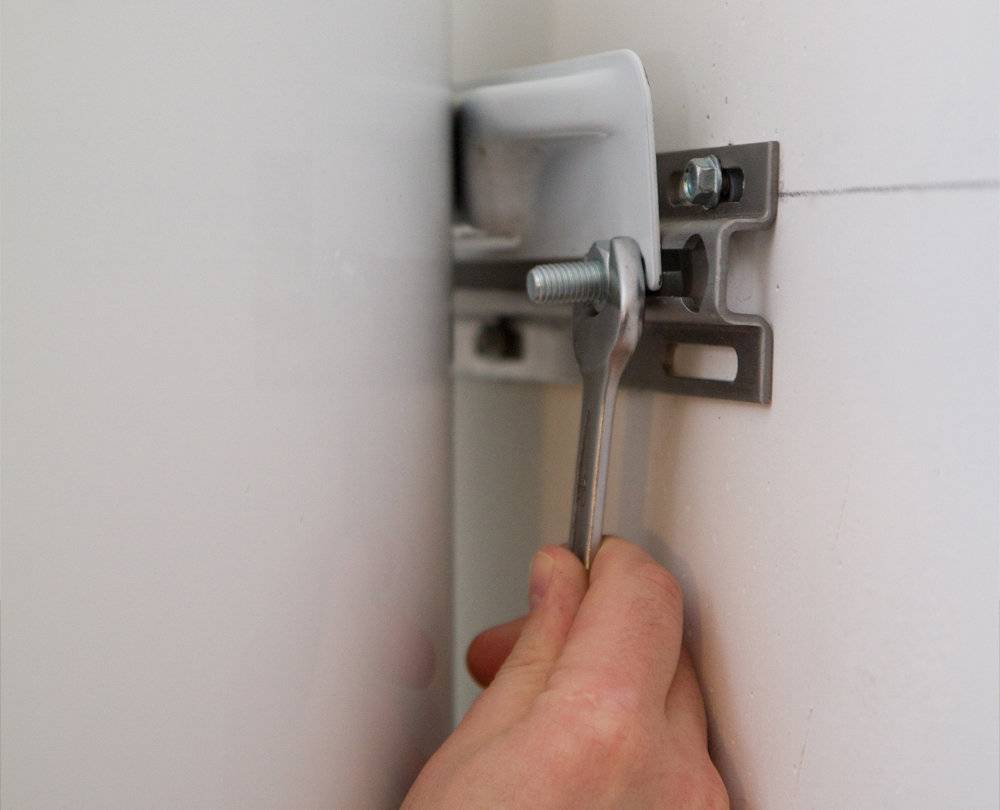 Шаг второй. Максимально точно отмеряем межцентровое расстояние крепления. Обозначаем высоту шкафа, дистанцию между стеной и ним. После получения всех необходимых цифр берем рулетку и приступаем к разметке поверхности стены. Далее в требуемых местах проделываем отверстия, забиваем туда дюбели, а в них вкручиваем анкеры.