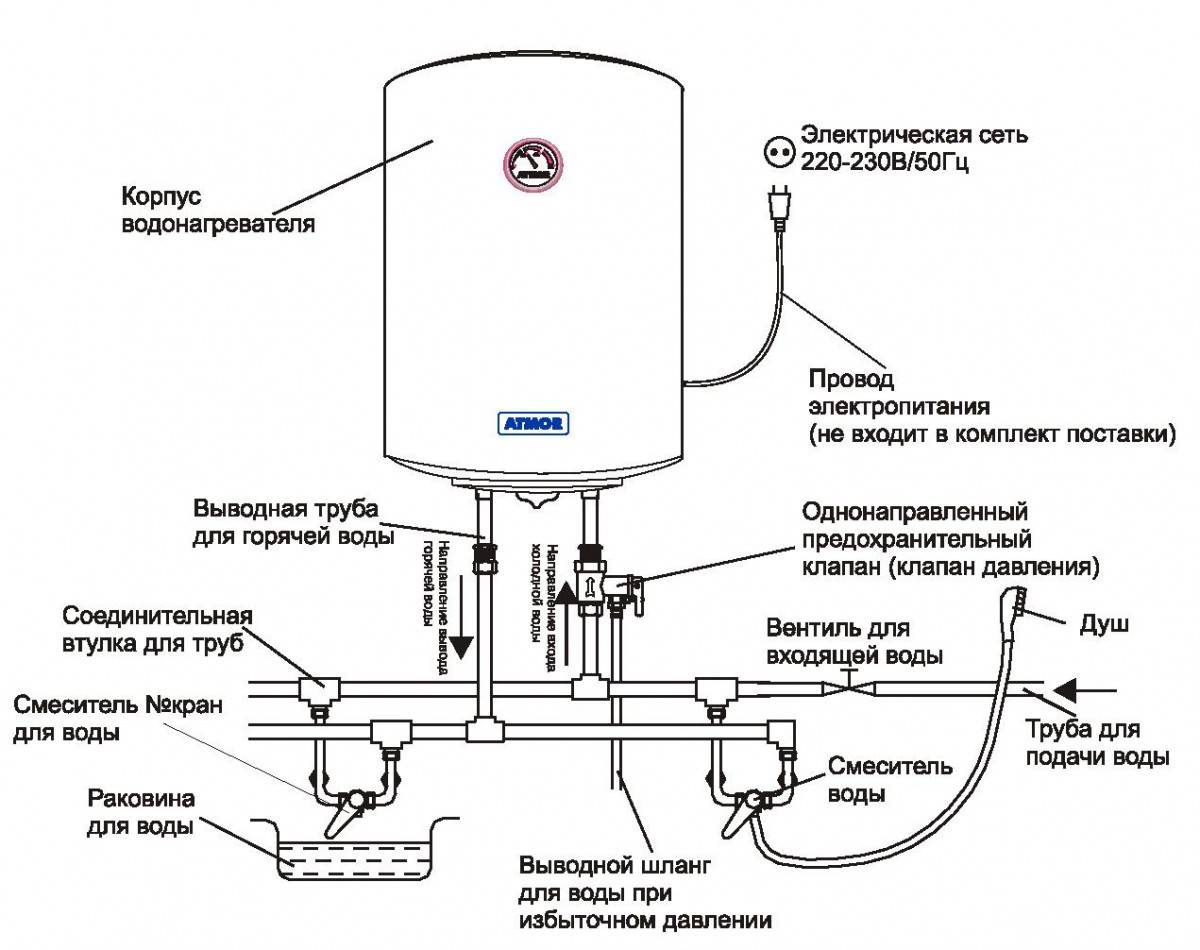Схема подключения водонагревателя (бойлера) к водопроводу показана на рисунке: