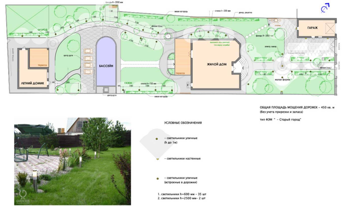 Начинают работу с подготовки траншей. Заранее составляете схему расположения всех светильников на своем участке.