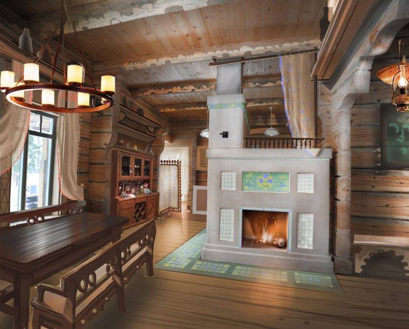 Такая конструкция лучше подходит для домов в деревенском стиле. Это могут быть строения из сруба, дерева или иметь соответствующий интерьер. Классический стиль – это печь, выполненная из кирпича, отделанная декоративными элементами.