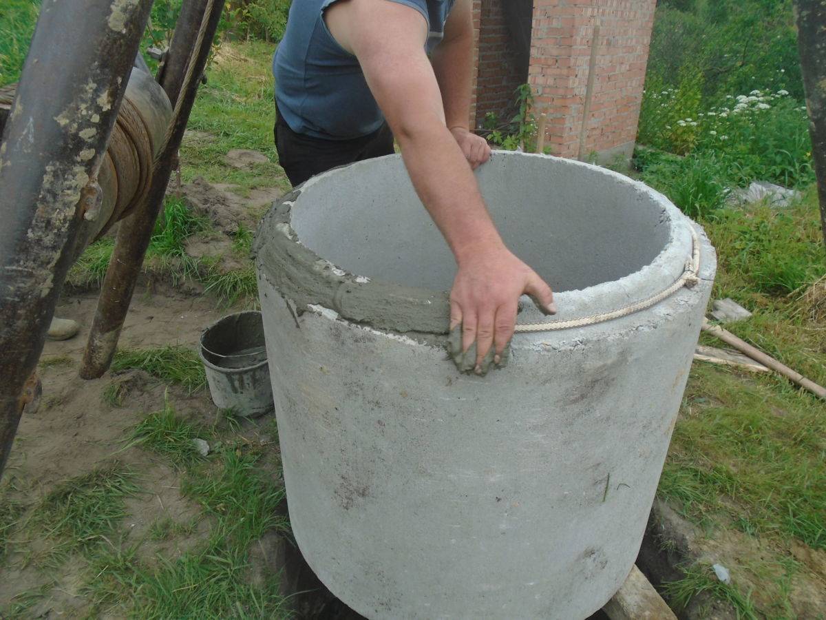 Чем замазать швы в колодце между кольцами