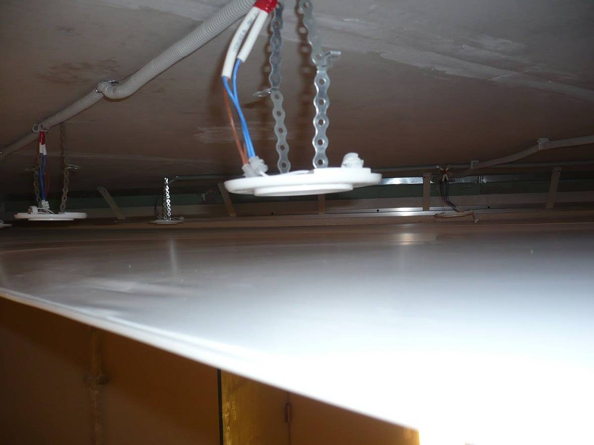 Если мастер предварительно не проверил потолок на наличие проводов, которые скрыты, он может просто повредить уже установленную проводку.