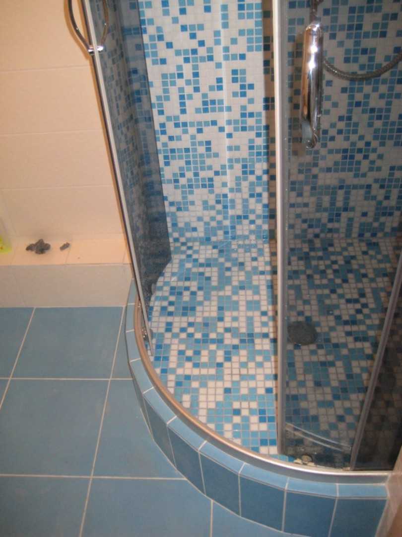 Если оба варианта не походят, делают поддон из кирпича или монолитного бетона, который затем облицовывают плиткой — обычной, для пола, или мозаикой. Это капитальное решение, но сложное в реализации. Если решили делать поддон в душевой из плитки, а живете в многоквартирном доме, вам необходима будет очень хорошая многослойная гидроизоляция: чтобы не было проблем с соседями снизу и сбоку. Это не значит, что в частном доме душевая кабина своими руками делается без гидроизоляции. Просто если «накосячите» страдать будете сами.