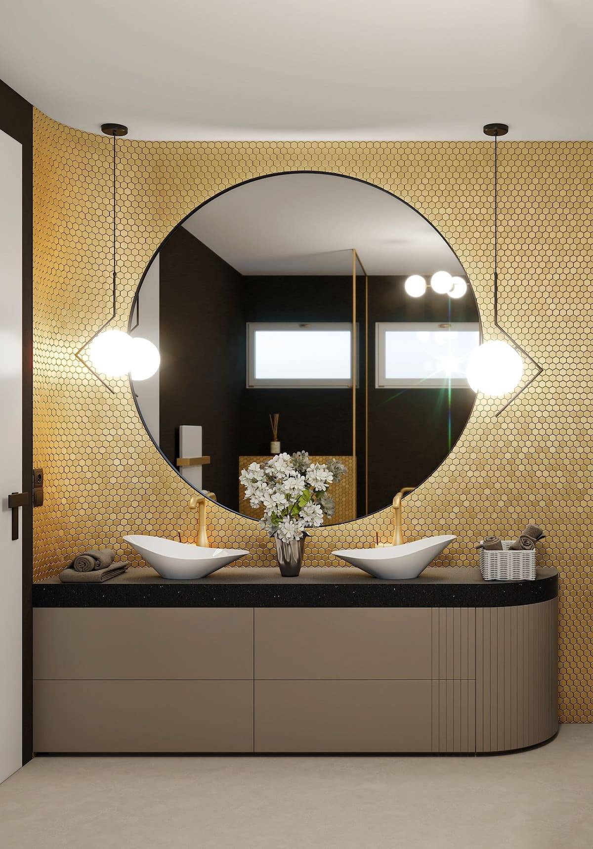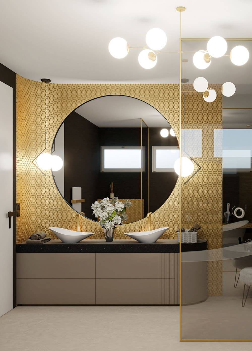 Ванные комнаты обычно требуют правильного освещения с множеством источников света. Если в ванной комнате нет большого окна, через которое проникает естественный свет, вам необходимо установить осветительные приборы вокруг зеркала, рекомендуется с обеих сторон. Вы можете выбрать круглые, квадратные или овальные акценты, которые можно установить либо над зеркалом, либо над ванной. Если вы решили украсить ванную комнату конкретными декоративными элементами, вы можете выделить их с помощью светильников.