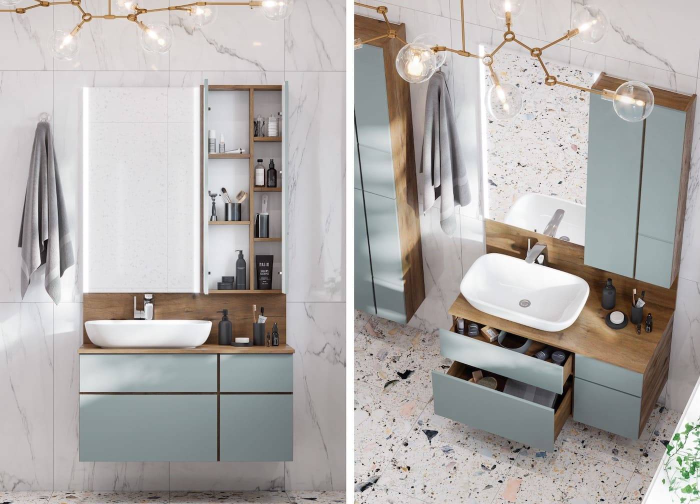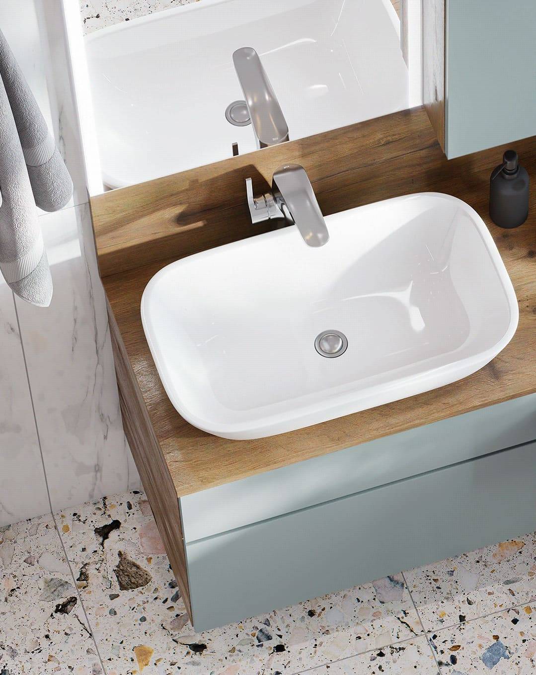- Форма раковины — на рынке представлены раковины круглой, квадратной, прямоугольной и неправильной формы. Если вы не хотите хранить что-либо под ней, вы можете выбрать ее с ножкой, но есть и те, которые можно разместить на столешнице или которые позволяют установить шкаф для хранения.