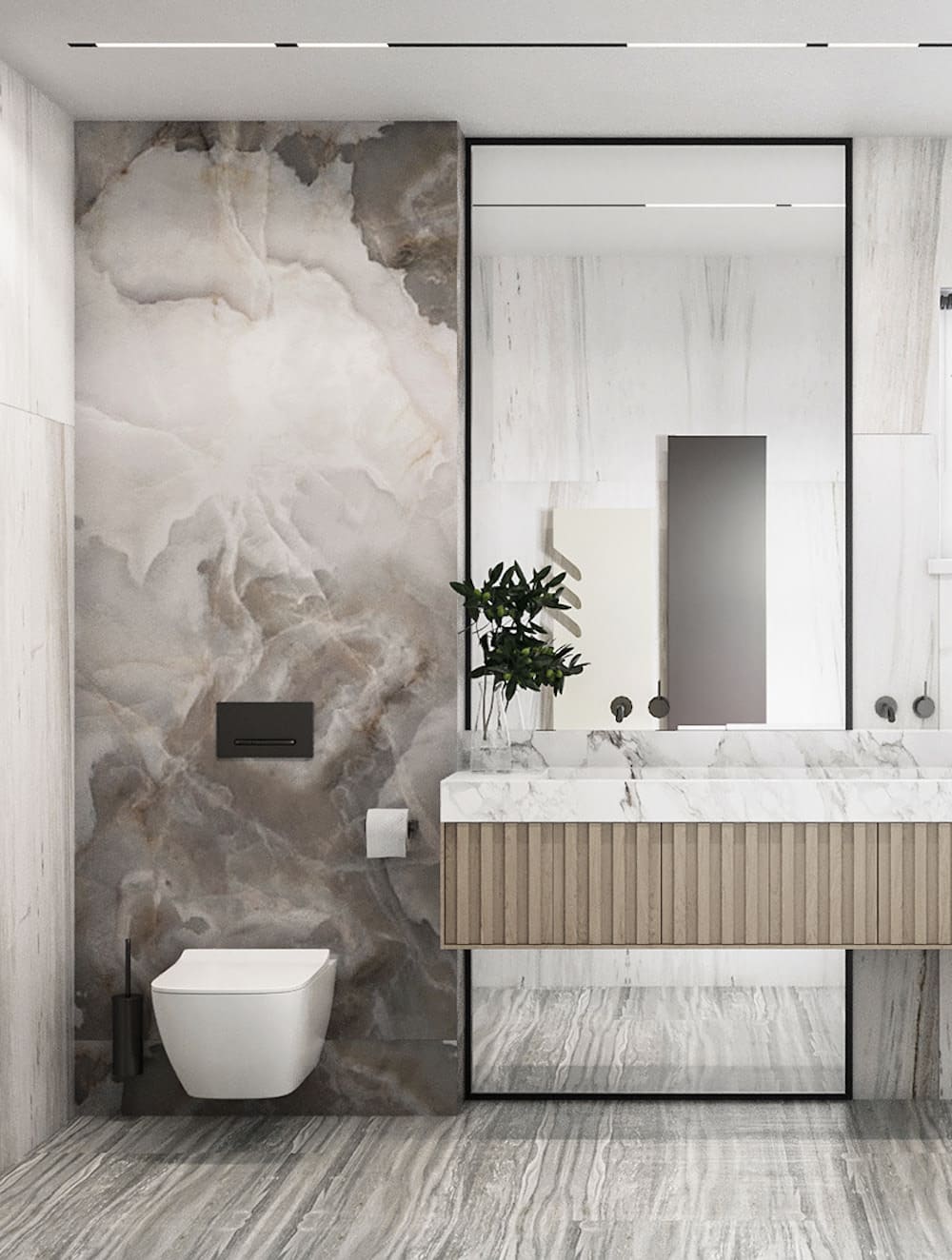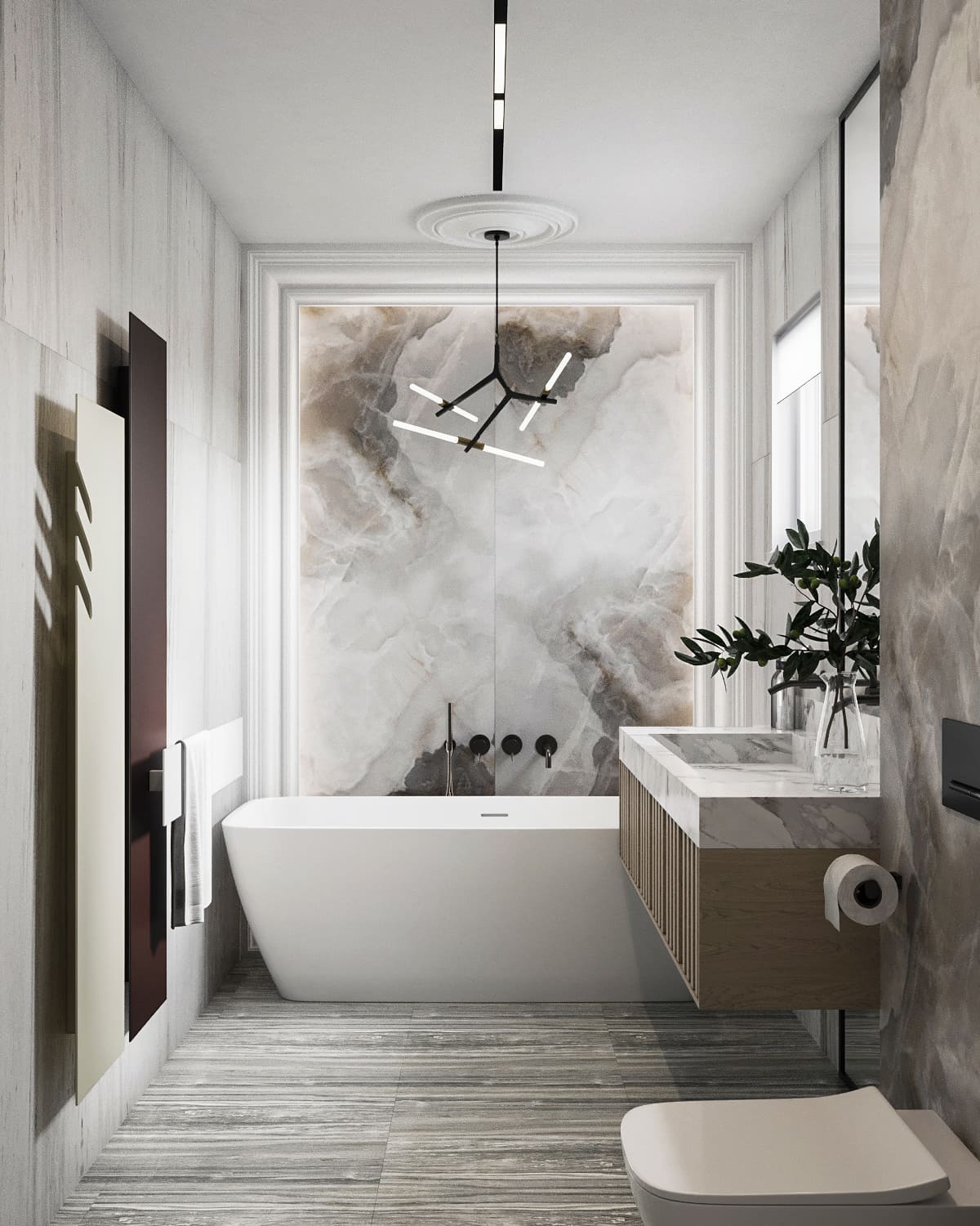 Модная тенденция в оформлении интерьеров ванной — отделка мрамором.