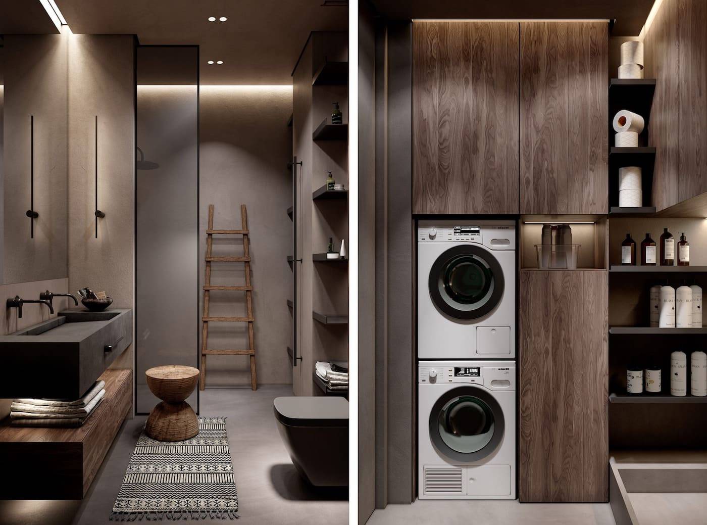 Стиральная машина незаменима в домашних условиях и, как правило, если позволяет пространство, может быть установлена в ванной комнате. В маленькой ванной комнате, если вы откажетесь от ванны, стиральная машина может быть легко размещена там, где вы получаете дополнительное пространство. Вы можете встроить ее в мебель или использовать ее поверхность для хранения различных вещей, таких как предметы личной гигиены, вешалки для полотенец или других аксессуаров для ванной комнаты.