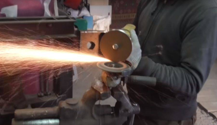 - Обрезаем болгаркой металл вокруг размеченного круга.