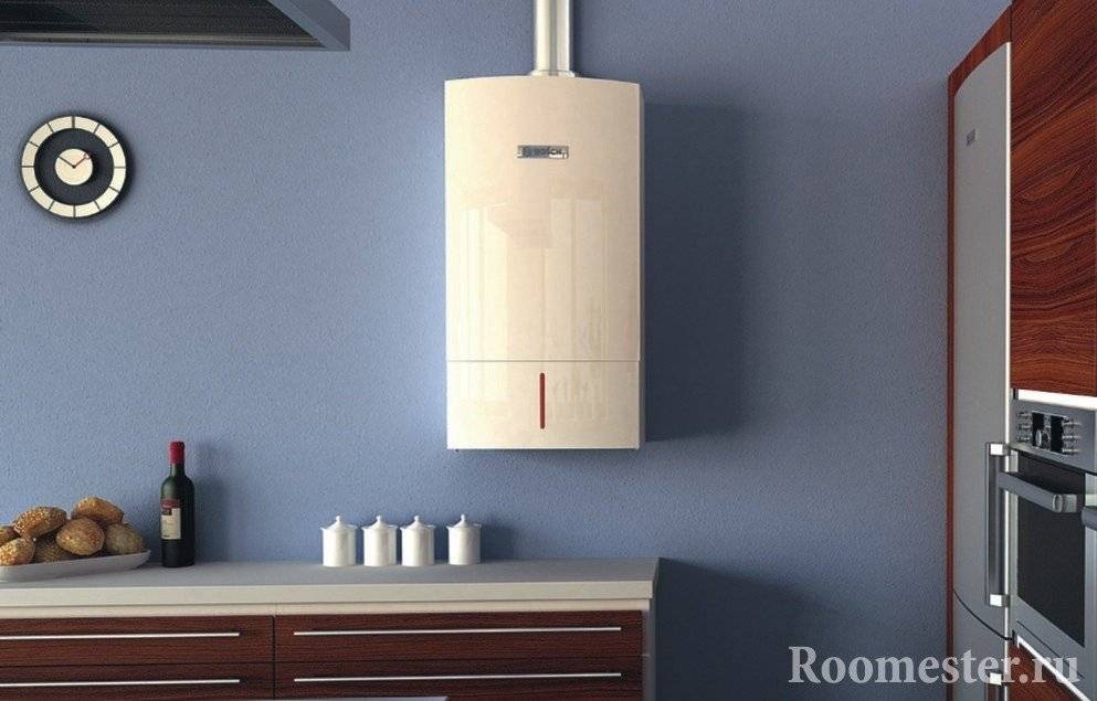 Несмотря на то, что газовые котлы могут быть как напольными, так и настенными в квартирах, как правило, устанавливают второй вариант оборудования. Во-первых, такое расположение котла удобно, ведь практически не занимает рабочего пространства, плюс ко всему таким расположением он находится далеко от детских рук и не так просто к нему добраться. Плюс ко всему современный дизайн устройства прекрасно подходит под интерьер современной кухни.