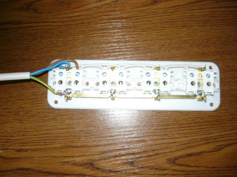 Конечно, при необходимости вы можете соединить удлинитель, изготовленный своими руками с фабричным вариантом, имеющим несколько розеток. Но желательно предусмотреть в изготовляемом варианте две или три розетки.