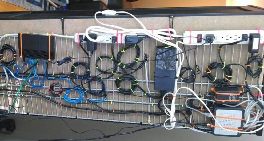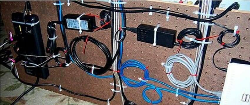 Какой самый простой выход из сложившейся ситуации? Смотайте провода в пучок, используя нейлоновые стяжки. Постарайтесь хоть как-то замаскировать шнуры. Идеальным этот способ назвать абсолютно точно нельзя, но он имеет право на жизнь.