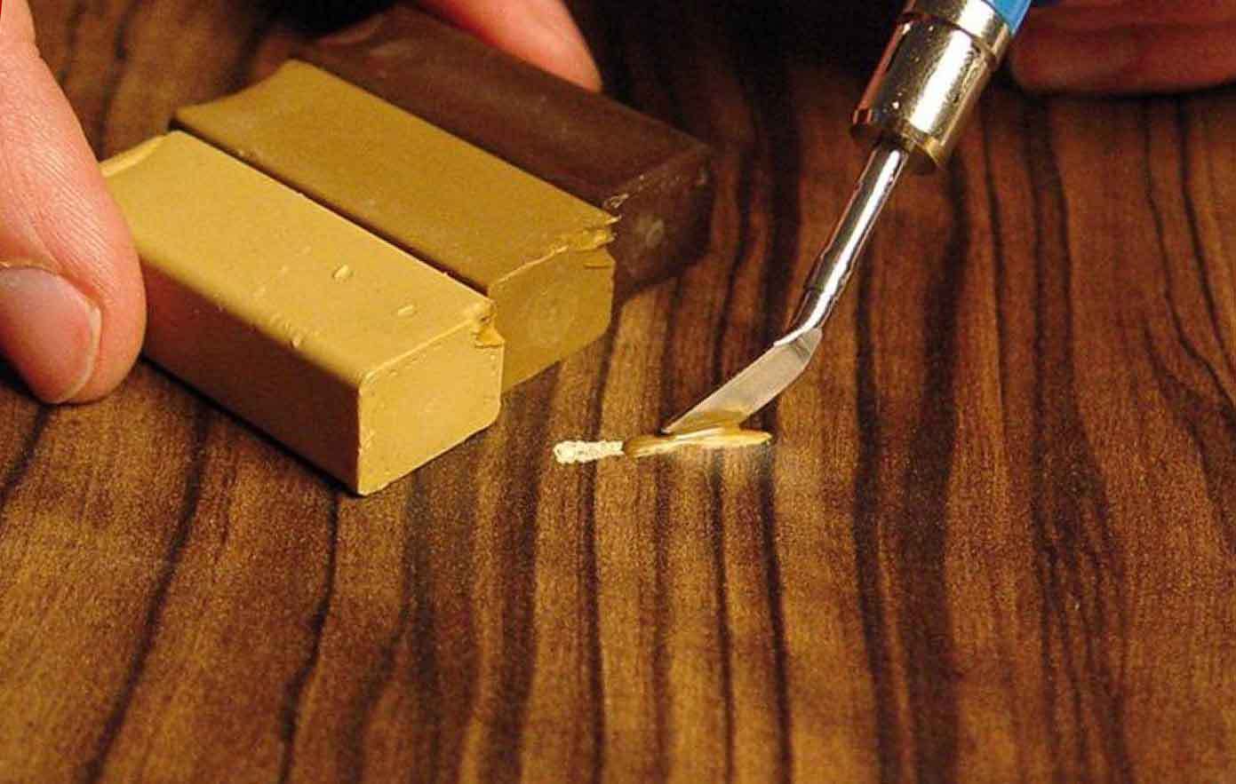 Твердая разновидность воска подходит для реставрации деревянной мебели с крупными дефектами. В отличие от мягкого воска твердый более густой и наносится на предварительно расплавленный паяльником материал. После нанесения излишки материала убирают шпателем, а покрытие тщательно полируют.
