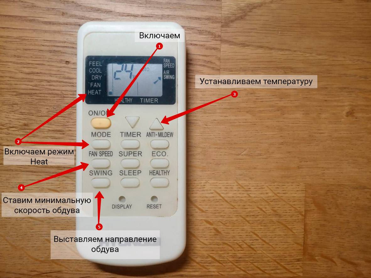 Пошаговая инструкция по включению кондиционера в режим тепла