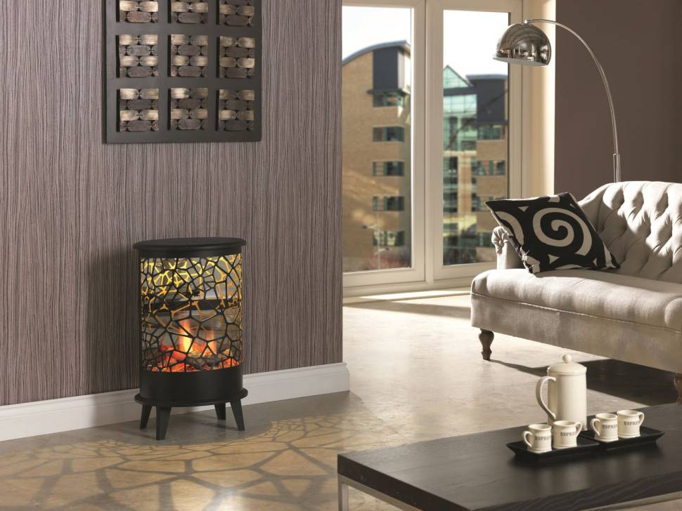 Перед нами довольно необычная модификация – это электрический камин настольного типа. Он достаточно миниатюрен, его размеры составляют всего 33х24х16 см. Его можно поставить на стол или на полочку, разместить на полу. Аппарат не только имитирует живое пламя, но и дает тепло – его мощность составляет 1,8 кВт. На его верхней панели располагается регулятор мощности. Никаких дополнительных функций здесь нет, что обеспечивает доступную стоимость электрокамина – она составляет чуть больше 3-х тысяч рублей.