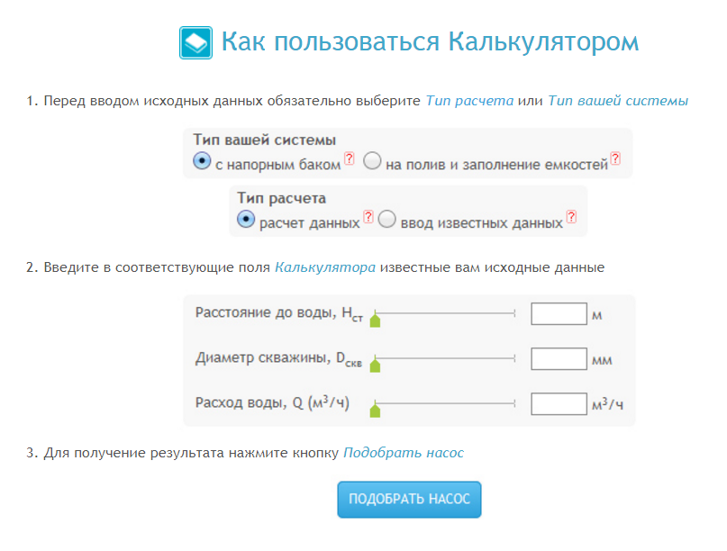 Выбор насоса